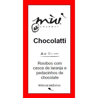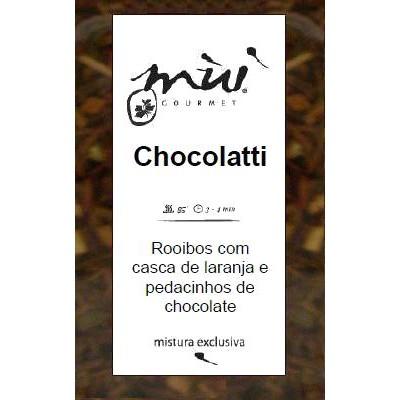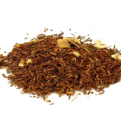 Rooibos com casca de laranja e pedacinhos de chocolate.